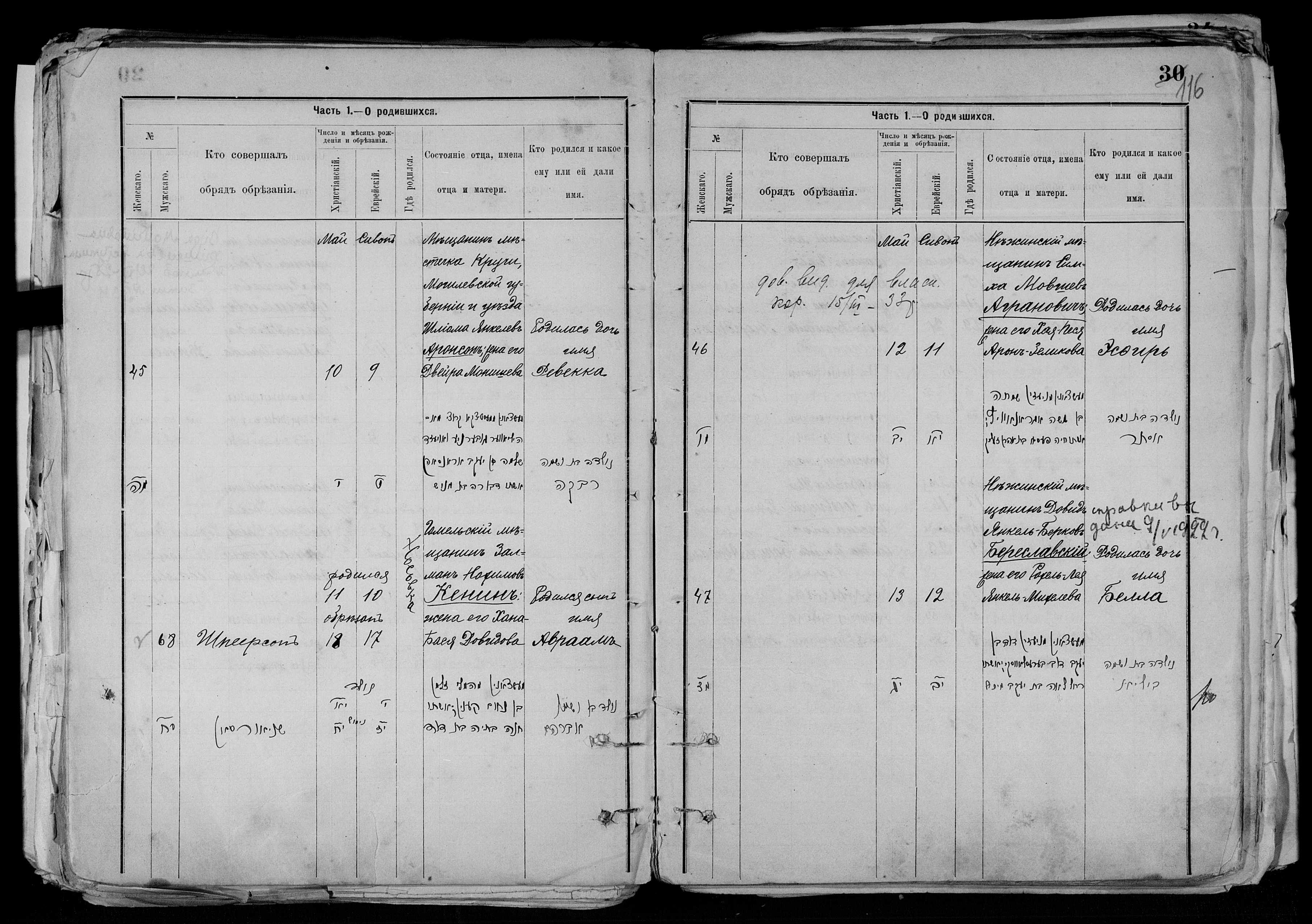 - Запись о рождении Ревекки Аронсон в канцелярии нежинского городового раввина 10 мая 1904 года