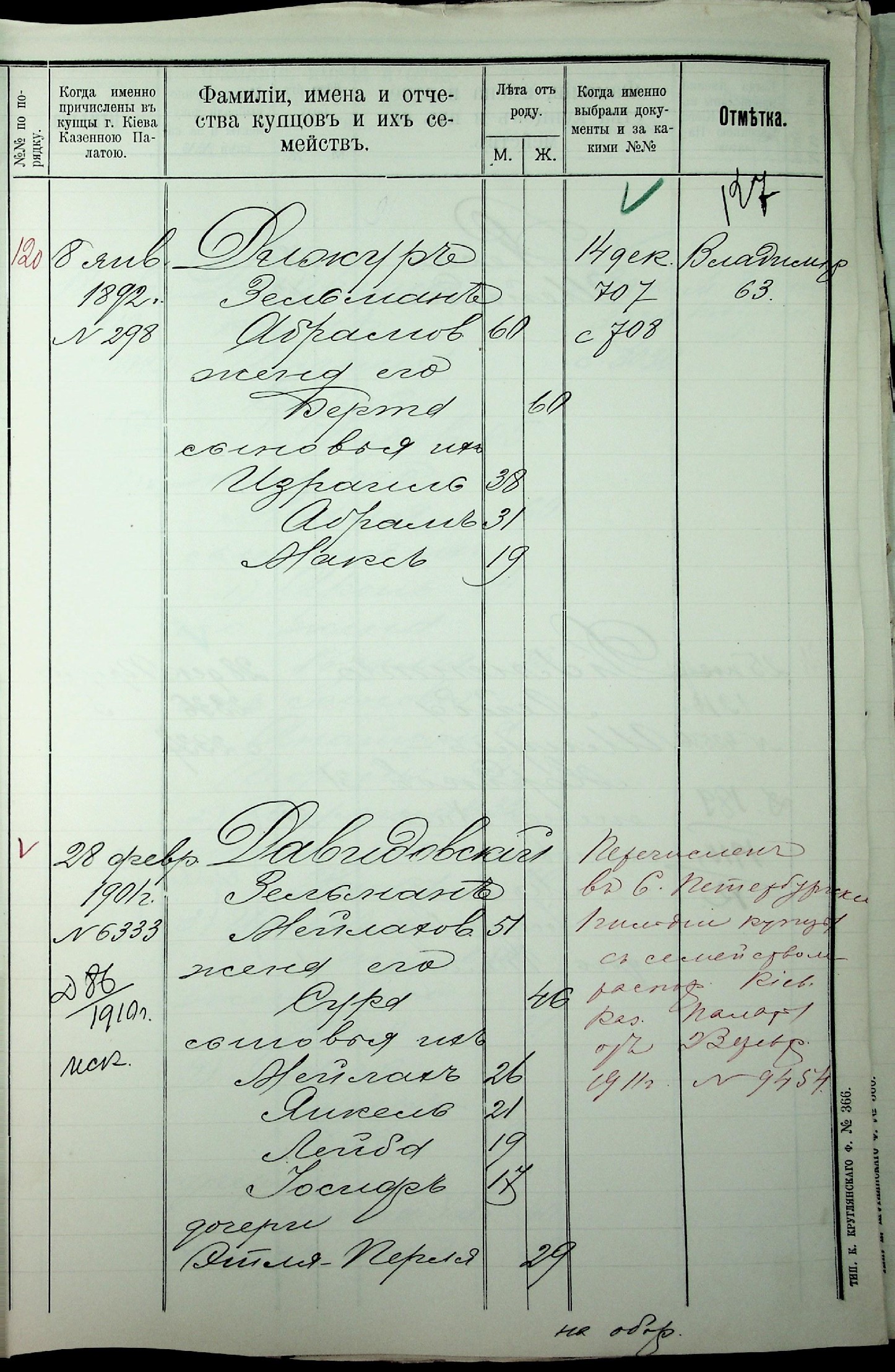 - Семья Дижур в переписи населения 1900 года по Киеву