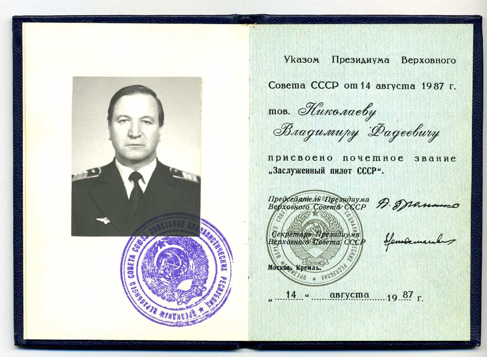 - Звания "Заслуженный пилот СССР" Ю. Н. Белкин удостоен НЕ БЫЛ! Содержащаяся в статье информация о 1988 годе присвоения звания абсолютно лжива! Достаточно посмотреть в «Ведомостях Верховного Совета СССР» №34 за 1988 год (статья 561, страницы 628-629) Указ Президиума Верховного Совета СССР о присвоении званий «Заслуженный пилот СССР» и «Заслуженный штурман СССР», чтобы убедиться, что никакого Ю. Н. Белкина там нет! Маленькая ложь порождает большое недоверие (к остальным фактам, изложенным в статье)... Андрей Симонов (обс.) 11:59, 8 апреля 2022 (UTC)[ответить]