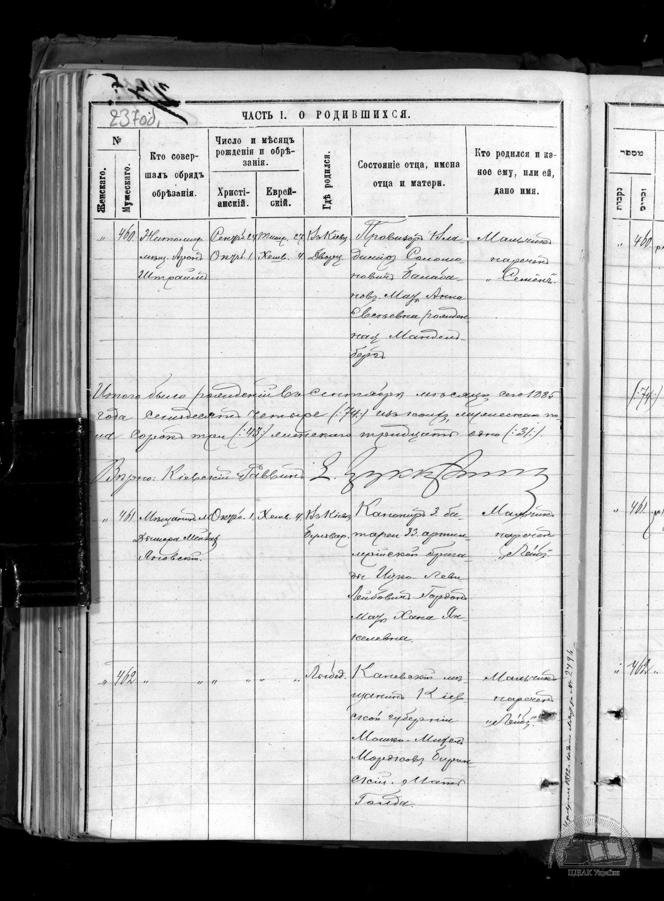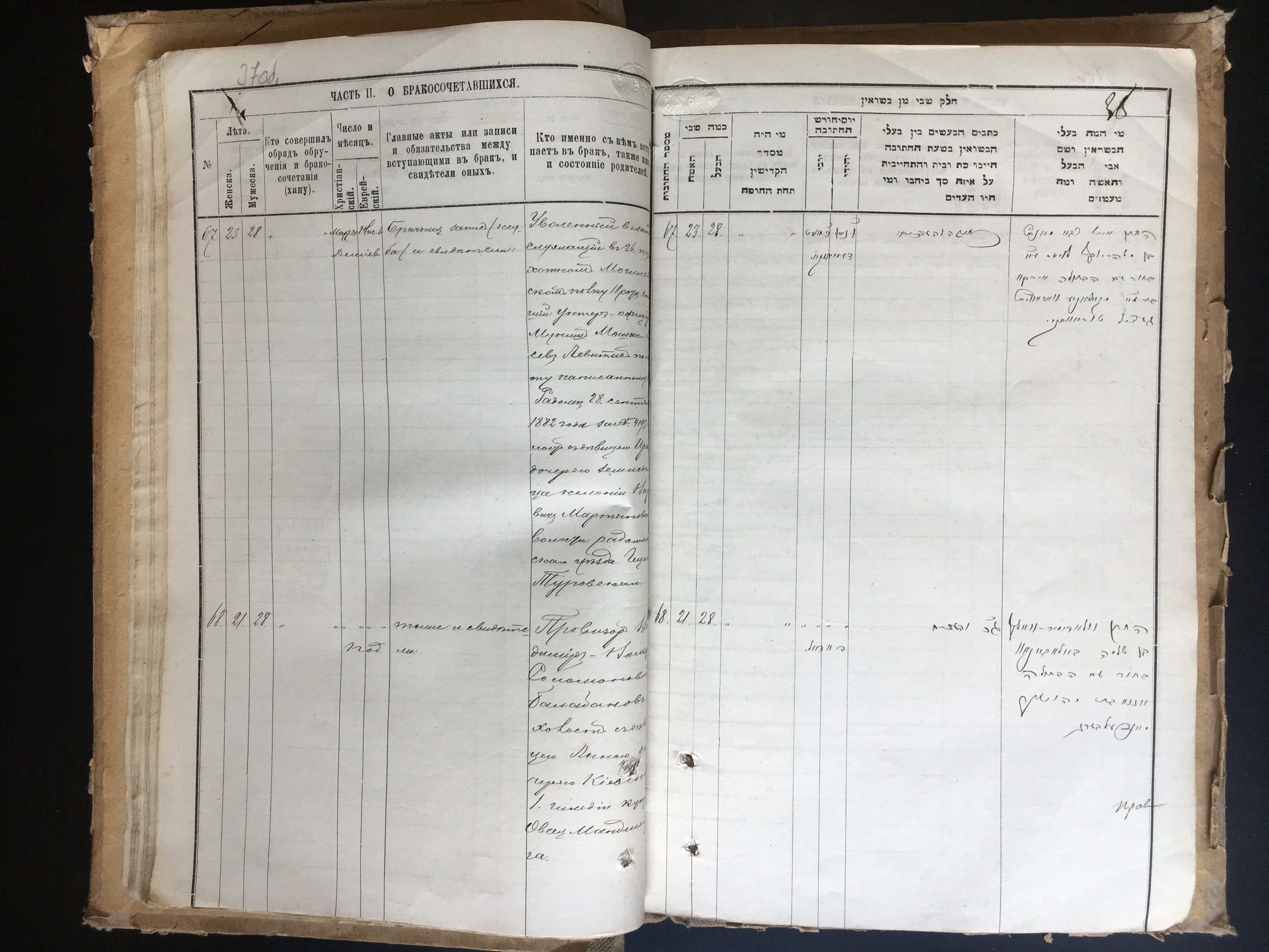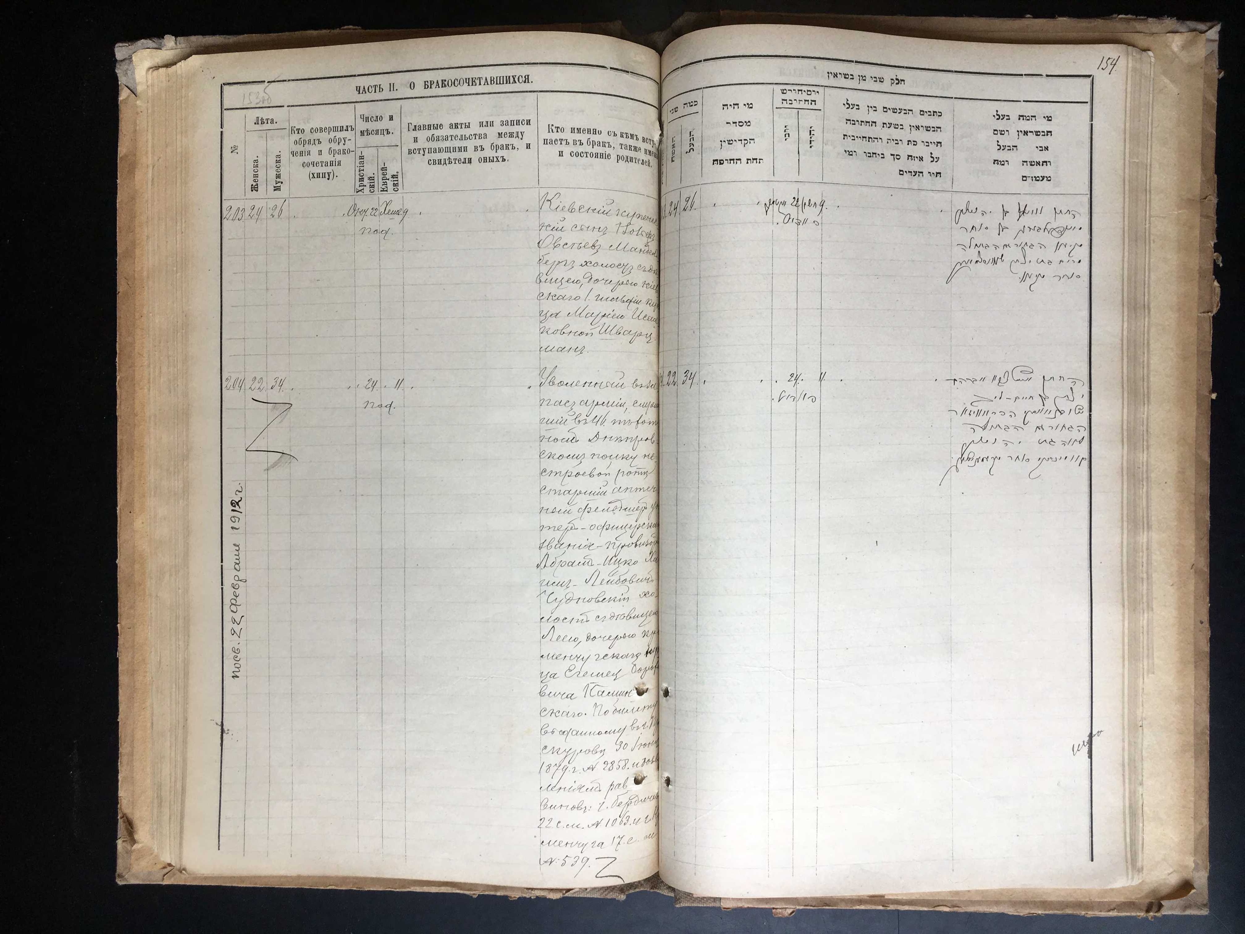 - Запись о бракосочетании в канцелярии киевского городового раввина 20 апреля 1884 года