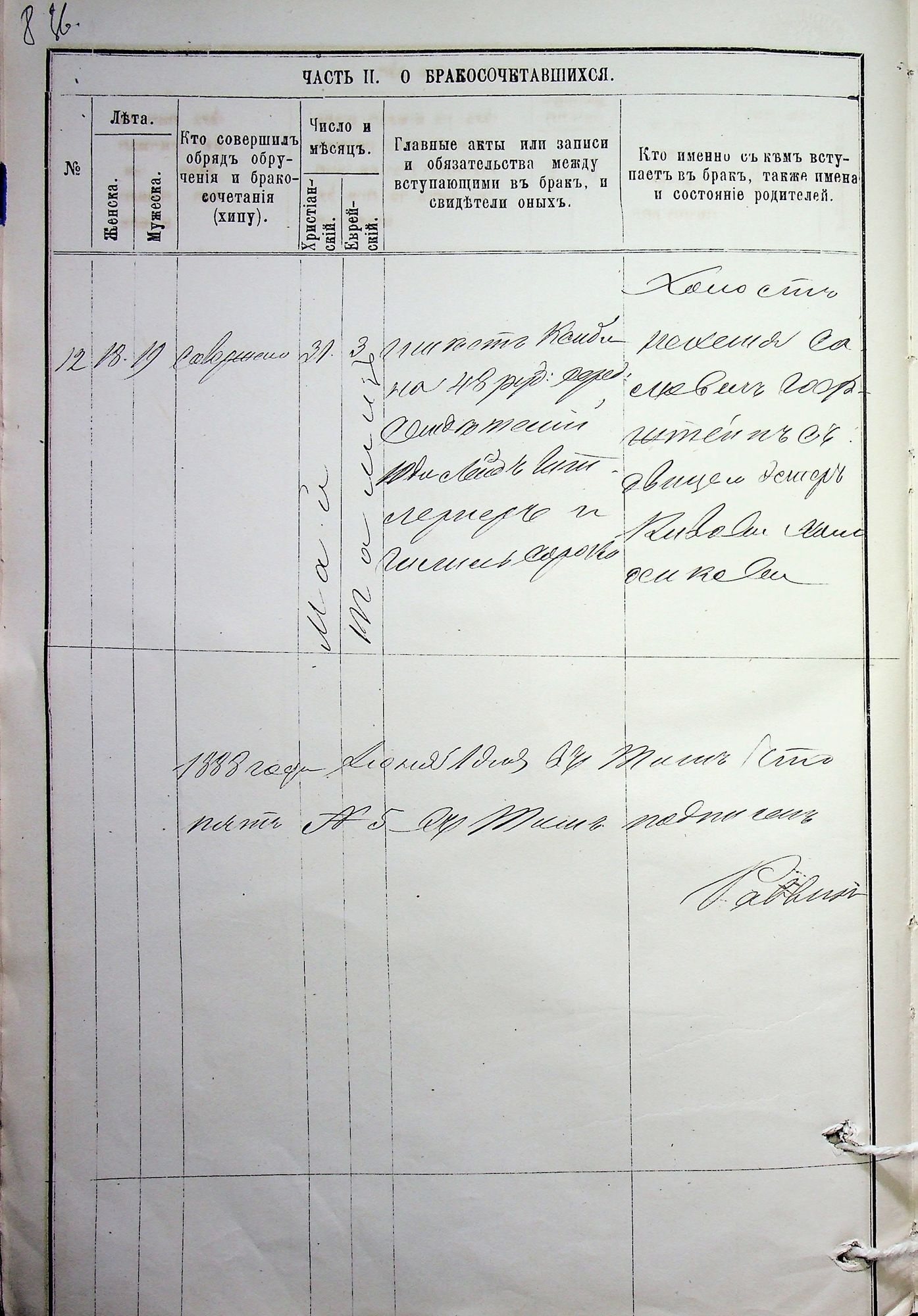 - Запись о бракосочетании 31 мая 1888 года в канцелярии коростышевского раввина