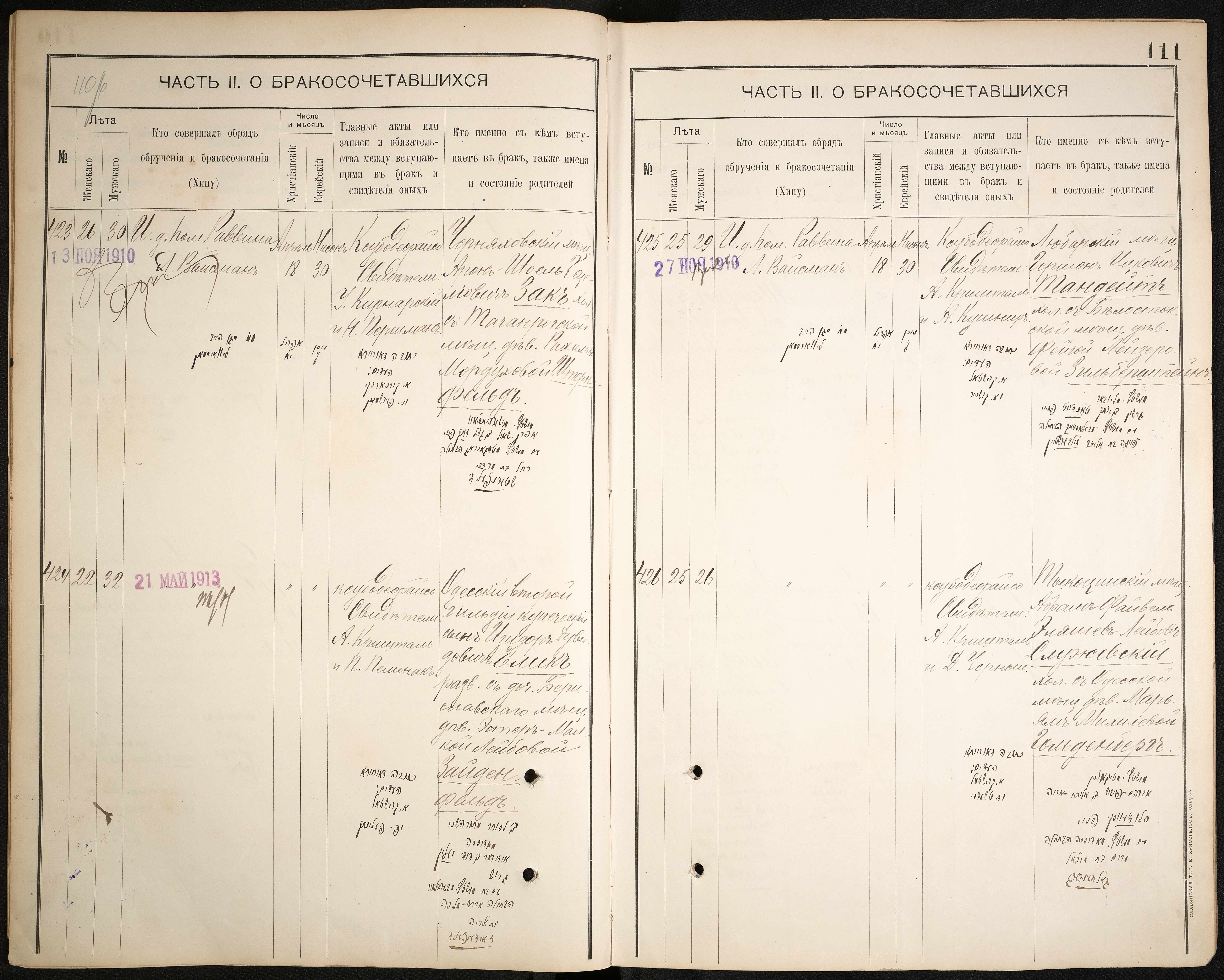 - Запись о бракосочетании родителей в канцелярии одесского городового раввина 18 апреля 1908 года: черняховский мещанин Арон-Шоель Гецелевич Зак, 30 лет, с таганрогской мещанкой, девицей Рахилью Мордуховной Зак, 26 лет.