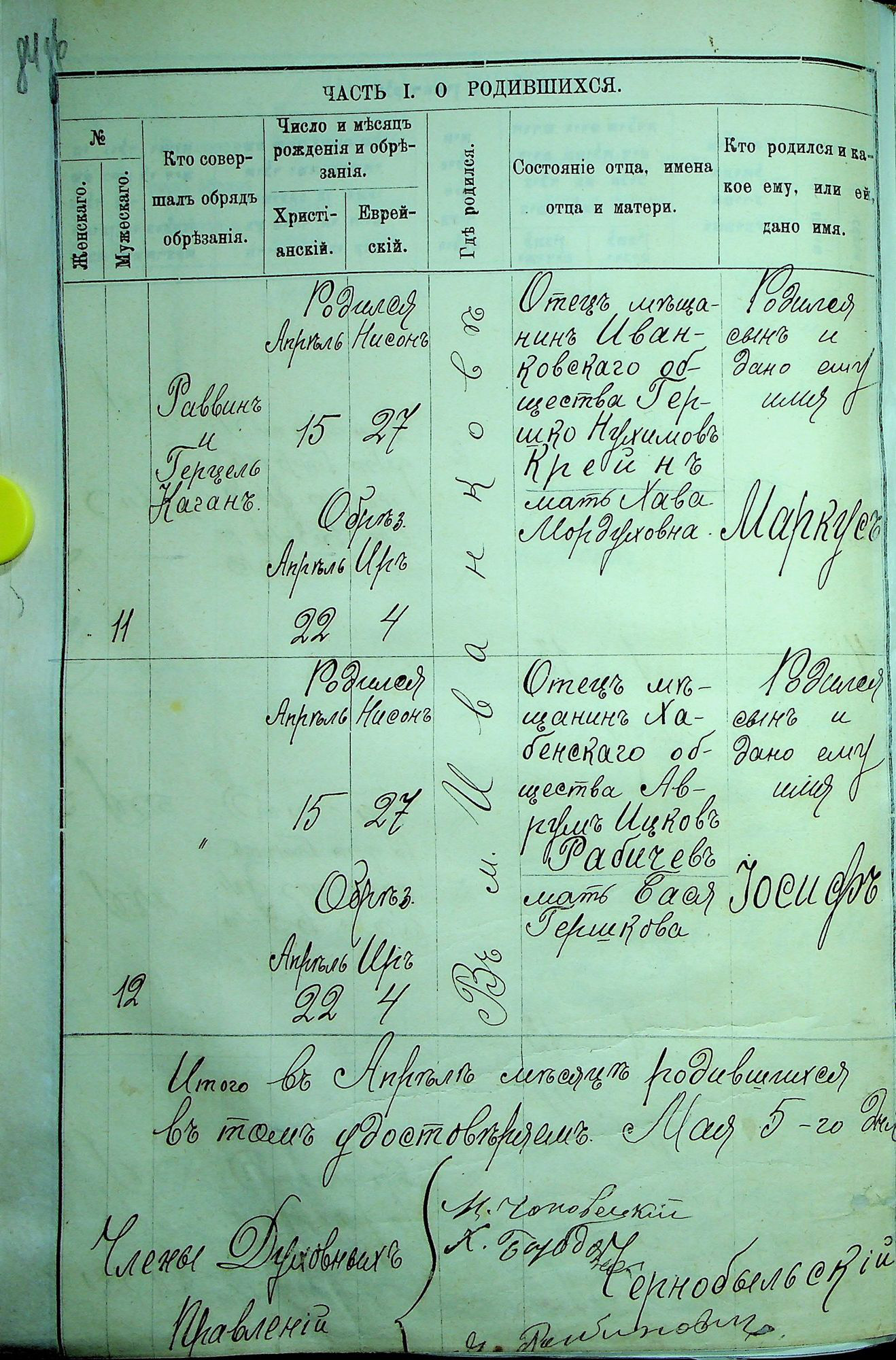 - 1 2 3 Запись раввина Герцеля Кагана о рождении 15 апреля и обрезании 22 апреля 1908 года в Иванкове Маркуса Крейна: отец — мещанин Иванковского общества Гершко Нухимович Крейн, мать Хава Мордуховна