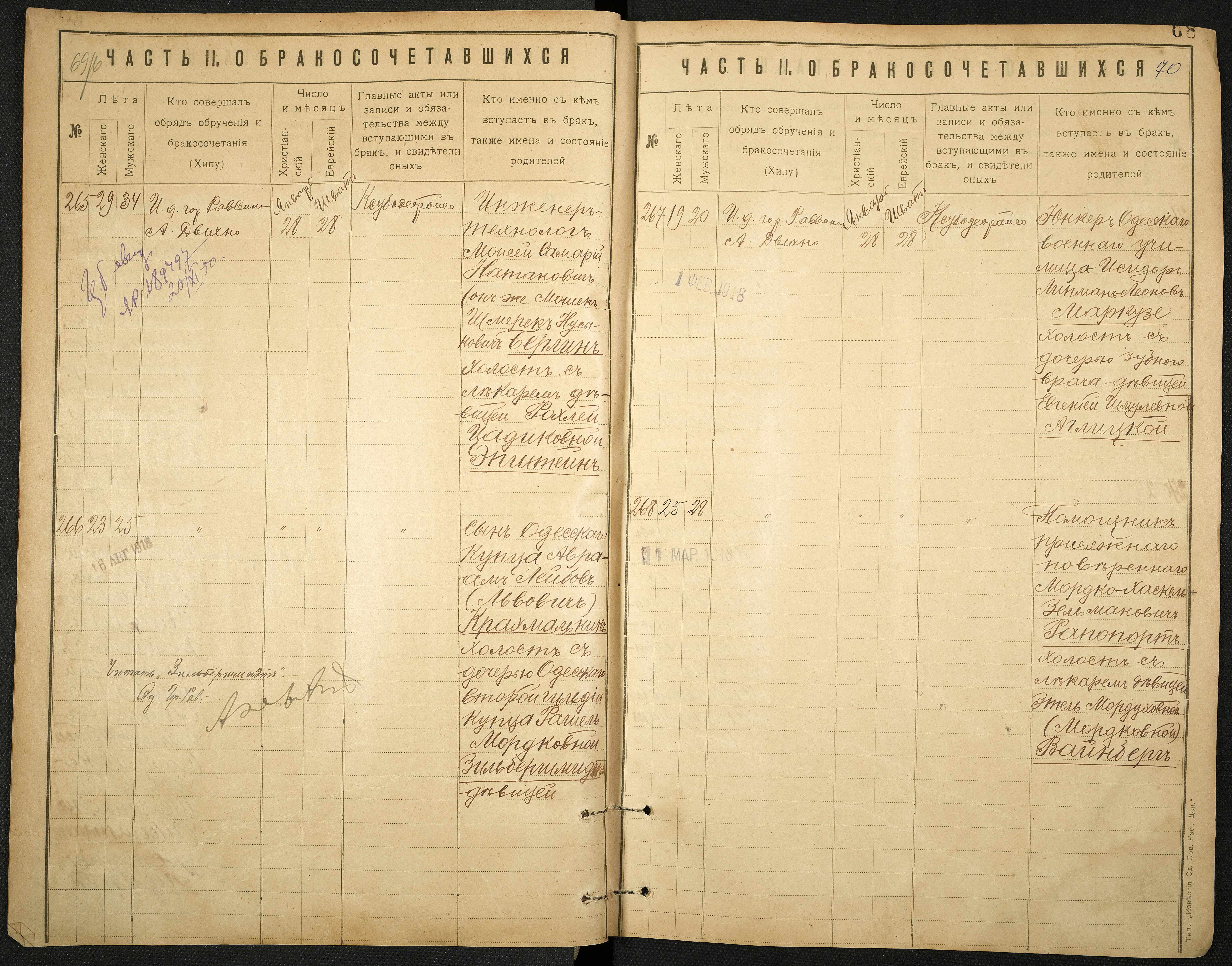 - Запись о бракосочетании в канцелярии одесского городского раввина: Юнкер Одесского военного училища Исидор Липман-Леонович Маркузе, холост, 20 лет, с дочерью зубного врача, девицей Евгенией Шмулевной Аглицкой, 19 лет.