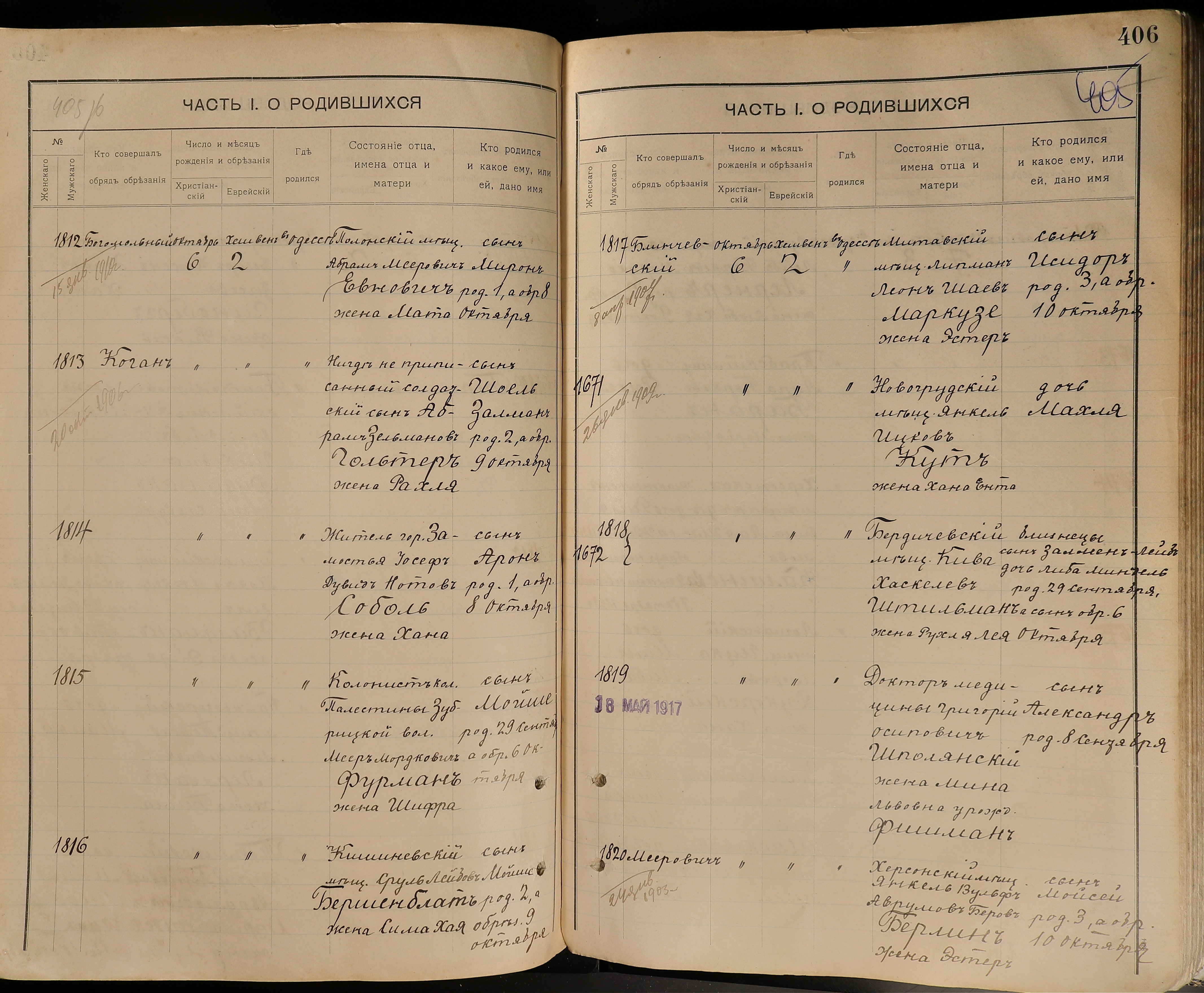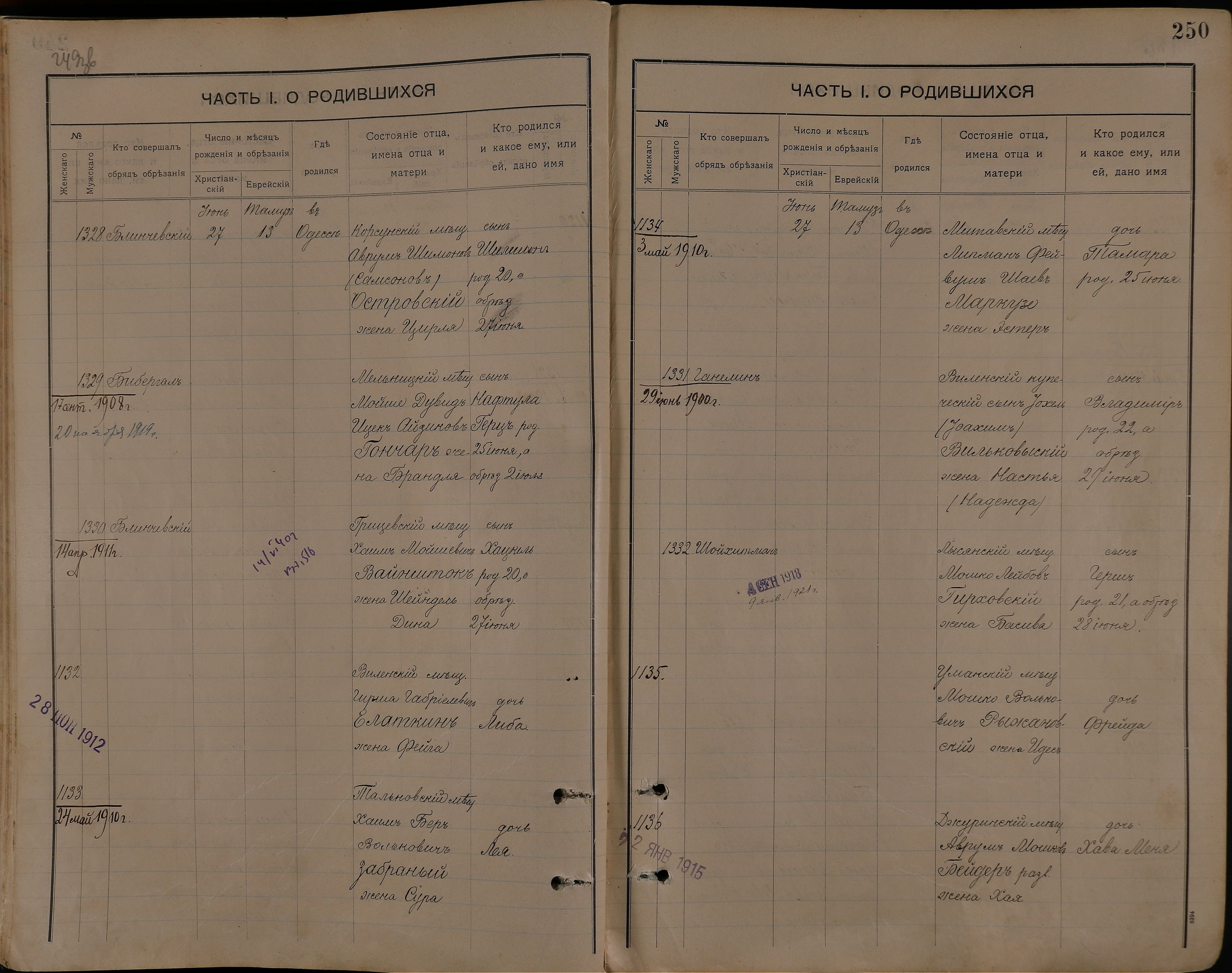 - Запись о рождении сестры Тамары 27 июня 1900 года в канцелярии одесского городского раввина