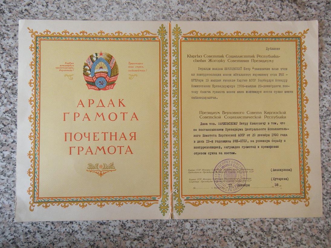 Почётная грамота Президиума Верховного Совета Киргизской ССР