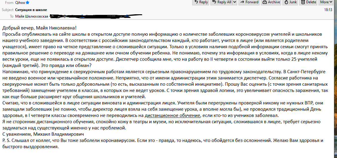 Добрый день. Тут вот человек внес в статью абзац, лишенный какого-либо смысла. То есть, безвредный, но и бесполезный. Я его удалил. Он вернул. Как поступать в таких случаях? Это не явный вандализм. Но и замусоривать текст чьими-то переживаниями тоже малополезно. — Muhranoff (обс.) 07:20, 7 июля 2020 (UTC)
