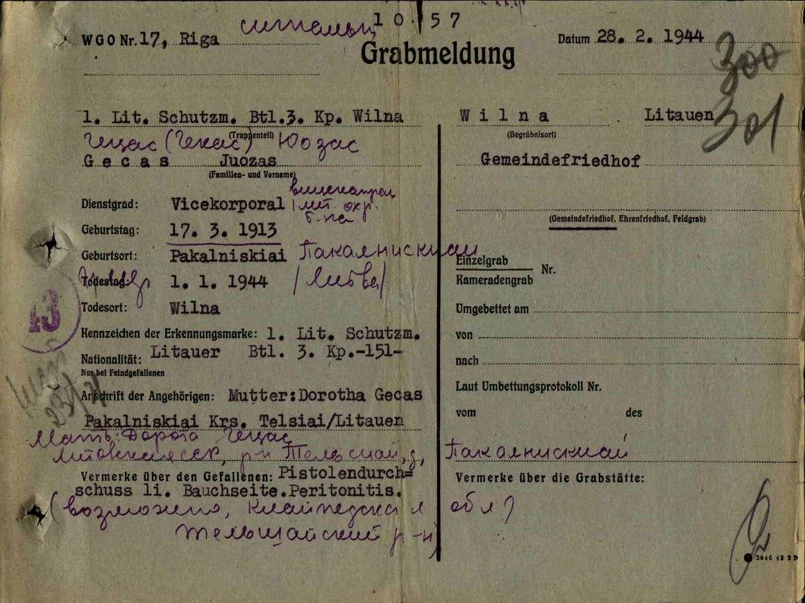 Есть и косвенные источники. Вот, например, немецкие свидетельства о смерти служащих 118 украинского батальона шума, и 1го литовского батальона шума: