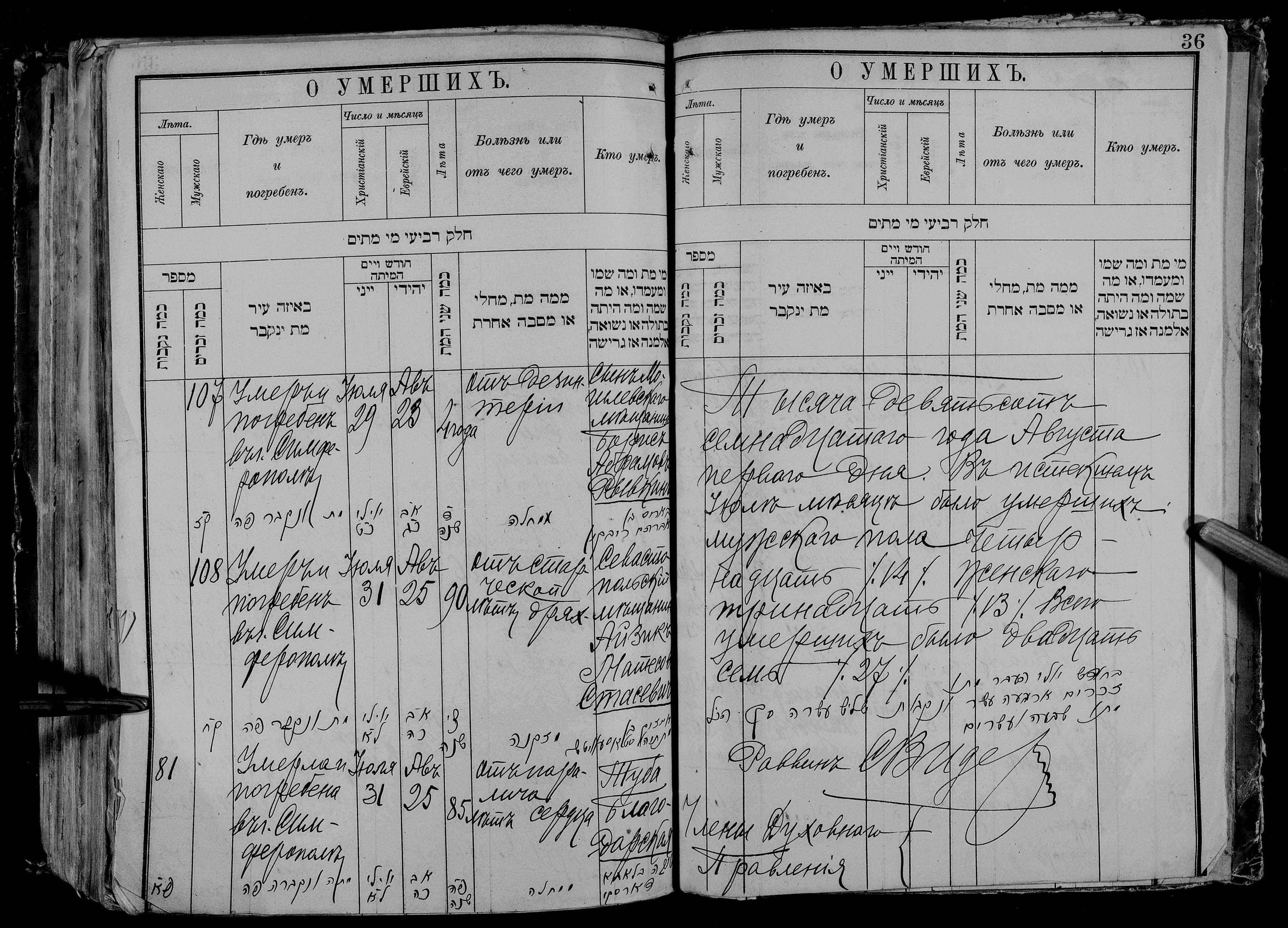 - Запись о смерти деда в канцелярии симферопольского городового раввина 31 июля 1917 года