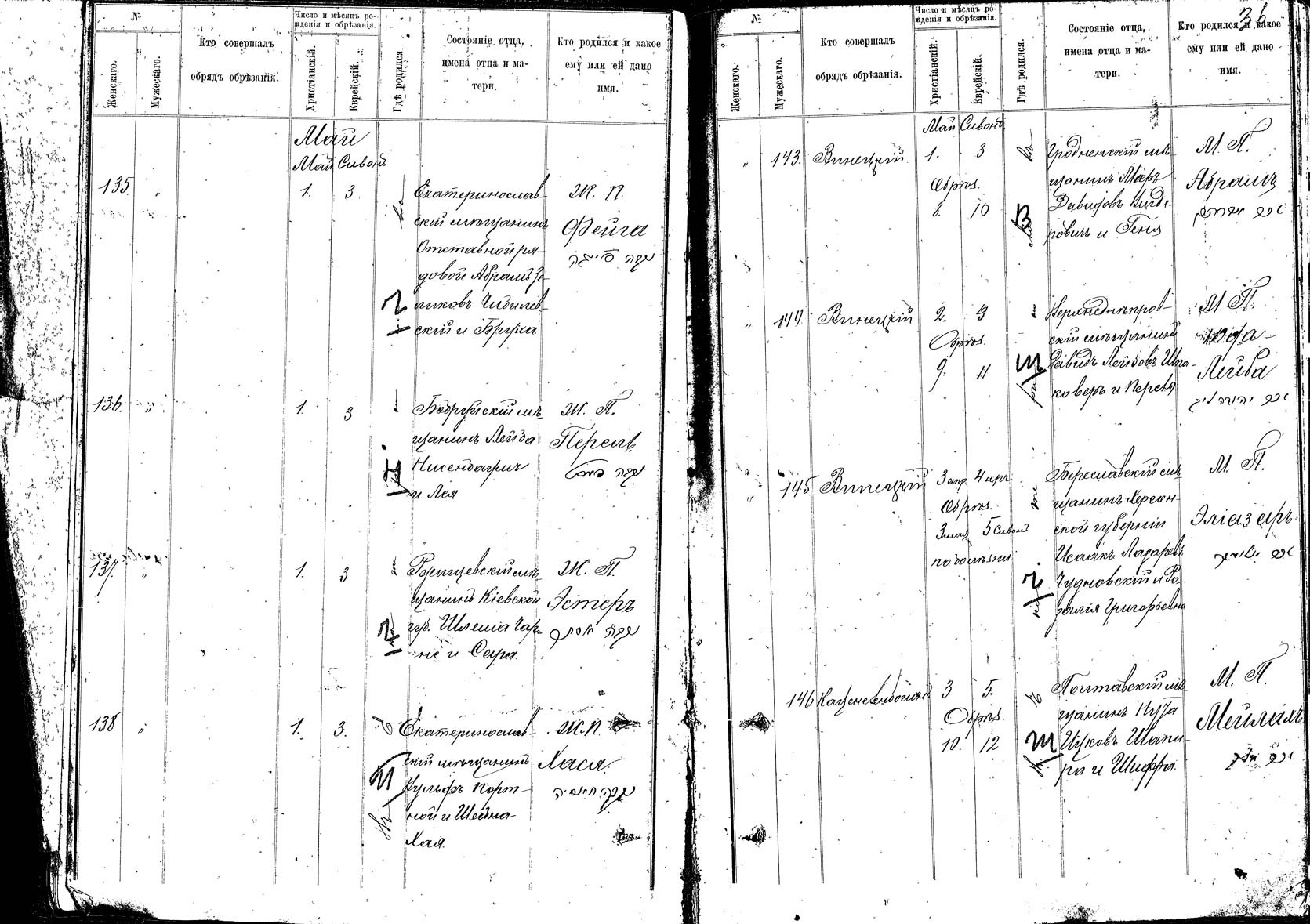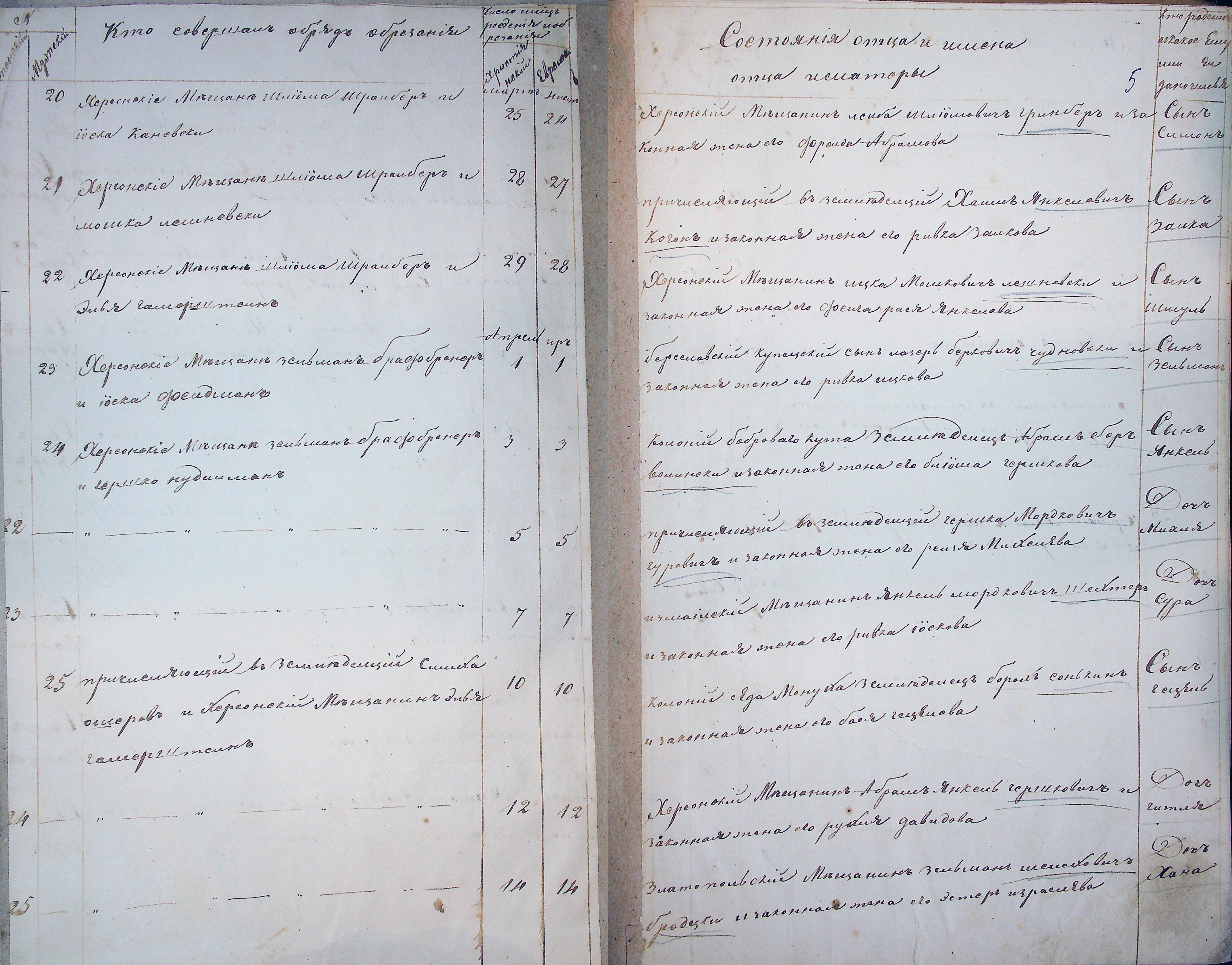 - Запись об обрезании Меера Чудновского 13 января (рождении 1 января) 1853 года в канцелярии херсонского городового раввина: родители — бериславский купеческий сын Берка, законная жена его Мерадель Абрамовна