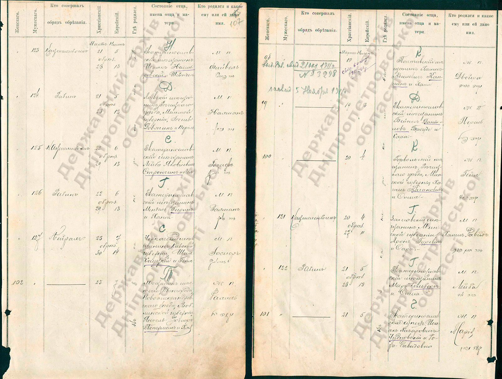 - Запись о рождении Элиезера Чудновского 3 апреля 1888 года в канцелярии екатеринославского городового раввина