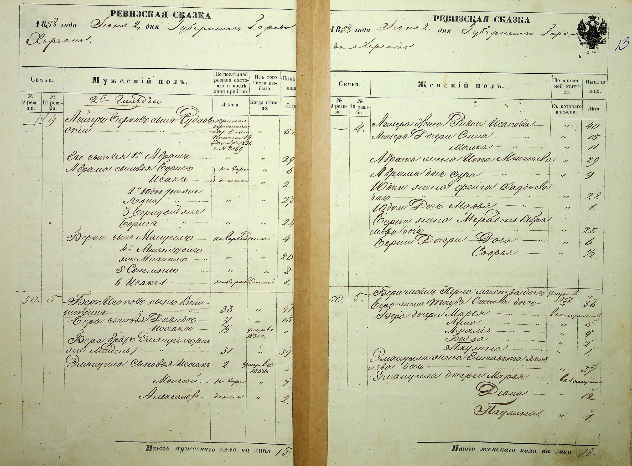 - Семья Чудновских в ревизской сказке 1858 года по Херсону: глава семьи — Лейзер Беркович Чудновский, 51 год; сын Соломон Лейзерович, 8 лет; сын Исаак Лейзерович, 1 года)