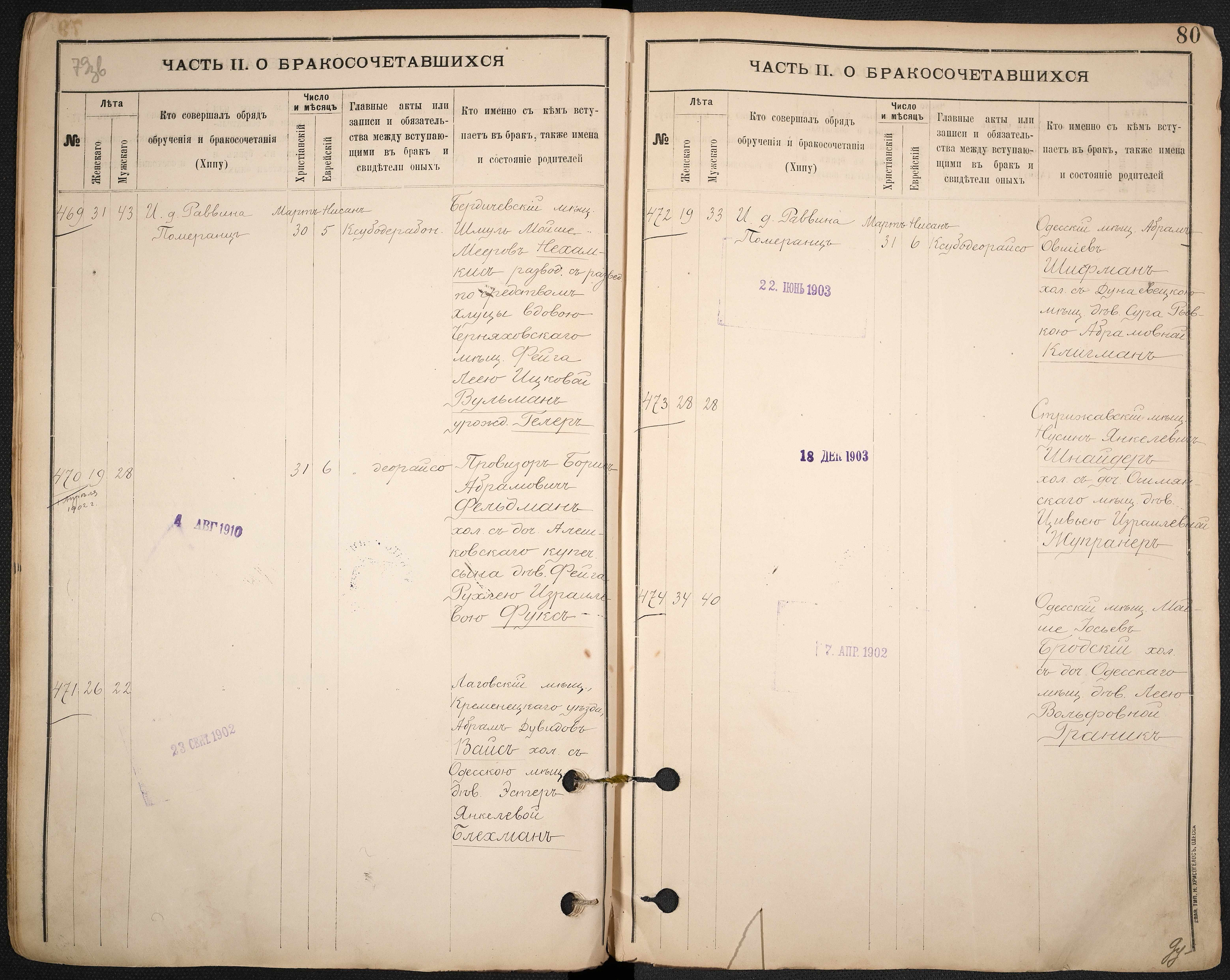 - Запись о бракосочетании в канцелярии одесского городового раввина